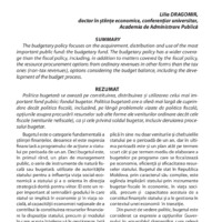 The budgetary policy focuses on the acquirement, distribution and use of the most important public fund: the budgetary fund. The budgetary policy has a wider coverage than the fiscal policy, including, in addition to matters covered by the fiscal policy, the resource procurement options from ordinary revenues in other forms than the tax ones (non-tax revenues), options considering the budget balance, including the development of the budget process.