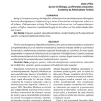 Being a European country, the Republic of Moldova has tended towards a European future by developing and implementing a series of innovative and systemic reforms in all spheres of Government activity. The European infrastructure and cooperation programs in higher education contributed largely to the reform of the national educational system.