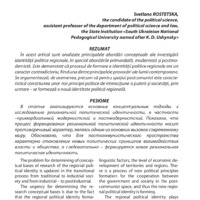 ROSTETSKA, Svetlana. Conceptual bases for the research of regional political identity. In: Administrarea Publică, 2016, nr. 2(90), pp. 146-150. ISSN 1813-8489.