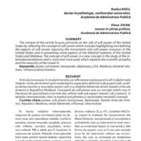 The content of this article focuses primarily on the role of soft power of the United States by reflecting the concept of soft power which includes highlighting and defining the aspects of soft power, exposing the instruments and soft power resources of the United States and in presenting some aspects of the bilateral relations of the United States and Moldova. The concept of soft power is a new concept in the study of the international relations and is more and more used, which explains the scientific actuality and the necessity of the research.