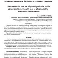 Формирование новой социальной парадигмы государственного управления здравоохранением Украины в условиях реформ