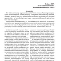 The inter-community approach is essential in the process of creating new paradigms of transformation, working, thinking. Through the intercommunity approach, strategies, successful practices, learned lessons, reflections, local needs, new ideas and opportunities - all contributing to a stronger movement at local and regional level, have been exchanged. Initiation and implementation of CIC is a complex process that entails the establishment of the most appropriate model of inter-community taking into account the main elements: local capacity (legal, institutional, technical, financial), population density, geography, economic capacity, political and territorial - administrative structure.