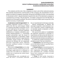 The contents and the role of the company as a basic unit of the national economy, the essential characteristics and functions of the company, the classification of companies according to property ownership, dimension and field of activity are examined in the present article. Special attention is paid to the role of the dominant company in contemporary economy. The peculiarities of modern companies from the Republic of Moldova are thoroughly analyzed. The role of small and middle-sized companies in the market economy is emphasized.