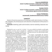 BARBĂROŞ, Ecaterina, NAZAR, Nadejda, TIGHINEANU, Steluța. Aplicarea marketingului în administraţia publică din Republica Moldova. In: Administrarea Publică, 2015, nr. 1(85), pp. 95-103. ISSN 1813-8489.