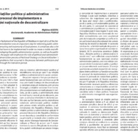 The adoption by the Parliament of the Republic of Moldova in April 2012 of the National Strategy on Decentralization was an important step for reforming public administration system and ensuring real autonomy of local powers. It comprises also a lot of recommendations that have to be implemented in order to create a stable and efficient framework for developing the public administration system, as well as the political one. In this context, the paper will emphasize the role of political and administrative relations in the implementation process of National Strategy on Decentralization`s action plan, as well as problems that occurred in the process between politicians and civil servants, passing through the transition period.