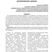 The organizational and legal regulation is considered as an integral system, the inherent element of which is the realization of rights and obligations of local self-government bodies. The problems connected with the imperfect distribution of the sphere of competence between local state administrations and local self-government bodies are analyzed. The components of the mechanism for exercising competencies of public authorities at the regional level are presented as well as the generalized model for exercising these competencies and improving the institution of delegation of powers is offered.
