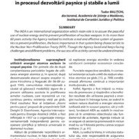 Importanţa instituţională a Agenţiei Internaţionale pentru Energie Atomică în procesul dezvoltării paşnice şi stabile a lumii