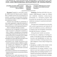 Începând cu anul 2016, asociația CRIES-Centrul de Resurse pentru Inițiative Etice și Solidare (www.cries.ro) participă la un program european ce promovează introducerea economiei sociale și solidare în învățământul profesional și tehnic. Demersul este dezvoltat în parteneriat cu mai multe organizații și rețele de economie socială și solidară, cu sprijin financiar din partea Comisiei Europene, prin programul Erasmus+. Dintre rezultatele obținute, amintim: • Realizarea unei cartografieri privind programele de formare în domeniul economiei sociale și solidare și identificarea principalelor constrângeri legate de introducerea unor programe de formare în domeniul ESS în Bulgaria, Grecia, Italia, Portugalia și România; • Identificarea unui profil al formatorului în domeniul economiei sociale și solidare; • Dezvoltarea unor module de formare în domeniul economiei sociale și solidare și pilotarea acestora prin implicarea unor profesori din învățământul profesional și tehnic, al elevilor și experților din domeniul economiei sociale și solidare; • Dezvoltarea și pilotarea unei metodologii participative de promovare a economiei sociale și solidare în școli; • Dezvoltarea unei rețele internaționale de învățare în domeniul economiei sociale și solidare. Militând pentru inovare în învățământul profesional și tehnic, dorim să contribuim la dezvoltarea civică și profesională a tinerilor, prin integrarea unor modele socio-economice alternative în setul de atitudini și idei cu care să iasă din școală. La baza demersului nostru se găsesc două premise importante, respectiv: Economia Socială și Solidară (ESS): o alternativă socio-economică: ESS se prezintă din ce în ce mai mult ca un model socio-economic vibrant și promițător în Uniunea Europeană și în diferite alte părți din lume. ESS este un demers transformativ, critic și pluralist, care include toate tipurile de activități socio-economice, promovând democrația în relațiile de muncă și la nivelul comunității, diversitatea culturală și justiția socială. Bazat pe conștientizarea ecologică referitoare la limitele Planetei, acest model stimulează cooperarea locală și descentralizată pentru a îmbunătăți condițiile de viață ale oamenilor. Învățământul Profesional și Tehnic: un instrument pentru schimbarea socială: o schimbare de paradigmă implică și o schimbare a conștiinței. Formarea inițială și continuă joacă un rol important în acest proces. Ca un instrument pentru schimbarea socială, formarea are un potențial important de a transforma adulții și tinerii în cetățeni și profesioniști capabili să facă față schimbărilor emergente din societate. În acest scop, conținutul și metodologiile de formare trebuie să fie inovatoare. În România, programul a fost pilotat de către CRIES în Timișoara, prin construirea unor parteneriate de lungă durată cu școli și organizații din domeniul economiei sociale și solidare