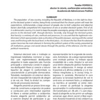 The population of any country, including the Republic of Moldova, is in the right to choose the electoral system it wishes, being firmly convinced that the chosen system will meet the expectations. Unfortunately, a large amount of people, due to both subjective and objective factors dont fully comprehend the importance of one or another electoral system. First of all, in a democratic country, it is ment to keep the peoples sovereignty, giving it the lead role in this process to the electoral staff , through elections. Secondly, only through the electoral system, that basicly is a entirety of rules, methods and processes, it is assured that the legitimate establishment of teh representative state authorities of the political power, starting with the central ones and finishing with the local level. In the third place , it is known the fact that the electoral system becomes the main element in forming the political system of the society, presented by all institutions, groups and social classes through the parties, of the alliances and the sociopolitical movements.