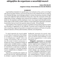 PĂSCĂLUŢĂ, Felicia. Răspunderea juridică a salariatului în cazul neexecutării sau executării necorespunzătoare a obligaţiilor de organizare a securităţii muncii. In: Administrarea Publică, 2014, nr. 2(82), pp. 148-154. ISSN 1813-8489.