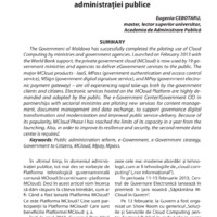 CEBOTARU, Eugenia. Platforma tehnologică guvernamentală comună (MCloud) – o nouă etapă în reforma administraţiei publice. In: Administrarea Publică, 2014, nr. 3(83), pp. 85-93. ISSN 1813-8489.