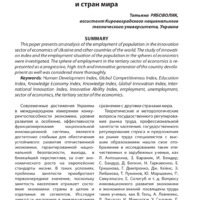 This paper presents an analysis of the employment of population in the innovation sector of economics of Ukraine and other countries of the world. The study of innovation index and the employment situation of the population in the spheres of economics were investigated. The sphere of employment in the tertiary sector of economics is represented as a progressive, high-tech and innovative generator of the country development as well was considered more thoroughly.