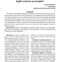 The role of the President of Republic of Moldova in the process of checking the constitutionality of laws before their promulgation is reviewed and determined in this article. The investigation aims to identify current issues that arise at implementing the presidential right to appeal to the Constitutional Court on the constitutionality of laws submitted for promulgation. There are also presented some proposals to improve national legislation for a better realization of this right. Both legislation and other states’ practices on the implementation of respective right have been analyzed in order to identify solutions.
