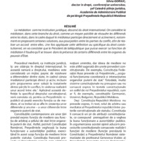 La médiation comme institution juridique, descend du droit international. On considère la médiation, dans cette branche du droit, comme un moyen paisible de résoudre les différends entre les états, dans le cadre duquel le médiateur participe directement et activement, notamment en proposant certaines solutions, aux pourparlers entre les parties du conflit, afin de réaliser un accord entre elles. Une fois appliquée cette définition au spécifique du droit constitutionnel, on va constater que le Président de laRépublique que puisse exercer sa fonction de médiation il faudra qu’il se trouve dans la présence de certains différends entre les organes du pouvoir d’Etat.