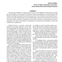 The principle of freedom of labour does not refer to the obligation of the State to provide jobs for all citizens, but to respect the freedom of choice of employment. As the principle of the freedom of labour law, labour has several components. Thus, freedom of work implies the person to exercise their right to work or not, to decide where, whom and under what circumstances will work, freedom of choice of profession, the freedom to decide on termination by virtue of resignation, the right to participate in negotiations of collective and individual, in fixing the conditions of employment.