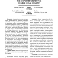MANOLE, Dinu, MANOLE, Doina. Pontențialul cooperativelor pentru economia socială. In: Revista Economia Socială , 2021, nr. 4(4), pp. 21-32. ISSN 2587-4179.