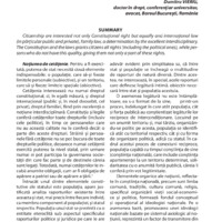 Citizenship are interested not only Constituţional right but equally and internaţional law (in părţicular public and private), family law, a determination by the excellent interdisciplinary. The Constituţion and the laws grants citizens all rights (including the political ones), while persons who do not have this quality, giving them not only a part of these rights.