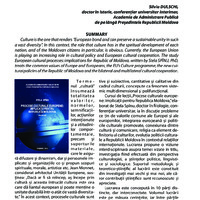 Culture is the one that renders “European bond and can preserve a sustainable unity in such a vast diversity”. In this context, the role that culture has in the spiritual development of each nation, and of the Moldovan citizens in particular, is obvious. Currently, the European Union is playing an increasing role in cultural policy and European cultural cooperation. The study European cultural processes: implications for Republic of Moldova, written by Stela SPÎNU, PhD, treats the common values of Europe and Europeans, the EU’s Culture programme, the new cultural policies of the Republic of Moldova and the bilateral and multilateral cultural cooperation.
