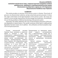 This article provides an overview of the pension system in Ukraine. Three levels of pensions are characterized: solidarity, savings and private pension provision. It shows the stages of formation of the legal regulation of the pension system. The study uses statistics on the number of pensioners and the average size of pensions. The article points out the key problems of effective functioning of the pension system. Separately, the author referred to the issue of discriminatory provisions of the pension legislation in need of reform. The overall conclusion of the need to codify pension legislation has been made. And in addition - the unification and harmonization of general and special pensions.