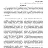 In the private the legal relationship between employee and the employer are based on the employment contract. Employment contract is the foundation of the existence and further development of relations that appear in the work performance. Employer’s refusal to legalize the labor relations by concluding in writing the labor contract with the employee is in violation of labor laws that are prejudicial to him, depriving him of certain rights, eg the right to social protection when the employee was unit was fired or liquidated.