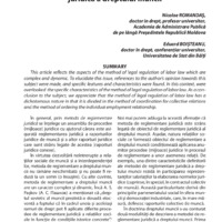 This article reflects the aspects of the method of legal regulation of labor law which are complex and dynamic. To elucidate this issue, references to the author’s opinion towards this subject were made, and specific features and characteristics were found. In this context, were overlooked the specific characteristics of the method of legal regulation of labor law. As a conclusion to the subject, we appreciate that the method of legal regulation of labor law has a dichotomous nature in that it is divided in the method of coordination for collective relations and the method of ordering the individual employment relationship.