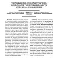 This article aims at presenting the main results of the Accelerator of Social Enterprises program developed by the “Alaturi de Voi” Romania Foundation through two projects co-financed by the European Social Fund, on a major area of intervention dedicated to the social economy. Through this program, a number of 42 social enterprises were set up, of which 18 also obtained their social brand, creating 215 jobs of which 41 created and maintained for people from vulnerable groups, including persons with disabilities. Also, through the Accelerator of Social Enterprises program, two tools useful to the sector were developed, namely the Virtual Map of Social Enterprises, which presents a number of 69 social enterprises in Romania, according to fields of activity and services offered, as well as the Observer of Social Economy in Romania, a tool for collecting and publishing annual data on the social and economic impact generated by social enterprises.
