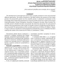 The development of management science had a complex evolution in time and presented different approaches. The study of literature in the field confirms the existence of two major periods: the prescientific period and the scientific period. A substantial contribution to the knowledge about leadership development in the prescientific period was made by the ancient Greek philosophers: Homer, Pythagoras, Heraclitus, Protagoras, Socrates, Plato, Aristotle. The scientific period is divided into three sub-periods: the industrial sub-period, the sub-period of analysis and systematization of the results of scientific research in leadership and the information sub-period. The representatives of the scientific period were: W. Wilson, M. Weber, F. Taylor, H. Fayol. A relevant contribution in the development of leadership science in Moldova has been made by the studies of the researchers M. Platon, A. Simboteanu, T. Deliu.
