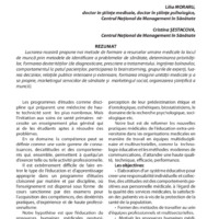 Lucrarea noastră propune noi metode de formare a resurselor umane medicale la locul de muncă prin metodele de identificare a problemelor de sănătate, determinarea priorităţilor, formarea dexterităţilor (de diagnosticare, prescriere a tratamentului, îngrijirea bolnavilor, comportamentul la patul pacienţilor, participarea la brainstorming, grupurile de experţi, luarea deciziilor, relaţiile publice interioare şi exterioare, formarea imaginii unităţii medicale şi a sa proprie, marketingul serviciilor de sănătate şi marketingul social, organizarea ştiinţifică a muncii).