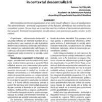 Administrative-territorial organization of an state should reflect its cours of development. The admininistrativ - territorial organization of the Republic of Moldova has evolved to a decentralized system. On our days we accept the need for a reform of the territorial-administrative network. Territorial reorganization should reduce costs and ensure quality services to the citizens.