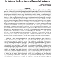 SERBENCO, Eduard. Structura instituţională de implementare a tratatelor internaţionale de drepturi ale omului în sistemul de drept intern al Republicii Moldova. In: Administrarea Publică, 2012, nr. 3(75), pp. 92-98. ISSN 1813-8489.
