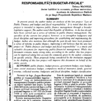 MANOLE, Tatiana. Sugestii asupra proiectului de lege „Legea finanţelor publice şi responsabilităţii bugetar-fiscale" . In: Administrarea Publică, 2011, nr. 1(69), pp. 72-77. ISSN 1813-8489.