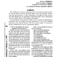 GHERMAN, Teodora. Facilităţi în procesul de creare a unui site pentru neprogramatori . In: Administrarea Publică, 2011, nr. 1(69), pp. 94-104. ISSN 1813-8489.