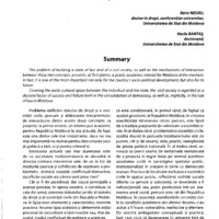 The problem of building a state of law and of a civil society, as well as the mechanisms of interaction between these two concepts, presents, at first glance, a purely academic interest for Moldova at the moment. In fact, it is one of the most important not only for the country's socio-political development, but also for its future. Covering the socio-cultural space between the individual and the state, the civil society is regarded as a decisive factor of success and failure both in the consolidation of democracy, as well as, implicitly, in the rule of taw in Moldova.