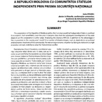 The cooperation of (he Republic of Moldova within the Common wealth of Independent States is confined to economics, but nonetheless, over the years it became clear that the subsequent development of the state depends on the cooperation in other areas. Analyzing the relations RM-CIS, in addition to the advantages it has its presence in the country and I could list a numbe rof disadvantages, such as dependence on political and economic structures of this community, the worsening economic situation by failing to elaborate a single economic concept, inability to solve the Transnistrian conflict.