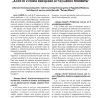 - Cred în viitorul european al Republicii Moldova. In: Administrarea Publică, 2011, nr. 3(71), pp. 89-91. ISSN 1813-8489.