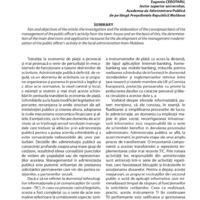 Aim and objectives of the article: the investigation and the elaboration of the conceptual basis of the management of the public officer’s activity from the town-house and on the basis of this, the determination of the main directions and applicative measures for the development of the management modernization of the public officer’s activity in the local administration from Moldova.