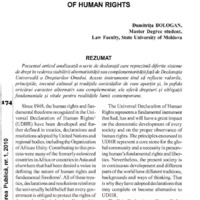 BOLOGAN, Dumitriţa. Alternative and/or complementary declarations to The Universal Declaration of Human Rights. In: Administrarea Publică, 2010, nr. 1(65), pp. 174-177. ISSN 1813-8489.