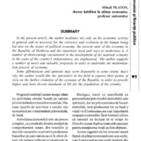 In the present article, the author meditates not only on the economic activity in general and its necessity for the existence and evolution of the human being but also on the issues of political economy, the present state of the economy in the Republic of Moldova and the imperious need and ways to modernize it. A number of shortcomings encountered in the development of the national economy in the years of the country's independence, are emphasized. The author suggests a number of novel and valuable proposals in order to undertake the modernization process of economy. Some affirmations and opinions may seem disputable to some extent, that's why the author would like the specialists in the field to express their points of view on the further evolution of the economy of the Republic in order to provide higher and more decent standards of life for the population of the country.