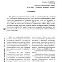 The efficiency of state structures depends to a great extent on the quality of the management oj the public function and of the civil servants within the public service. The management of the public function and of the civil servants is an ensemble of processes in continuous modification in accordance with the muta tions within the internal and international administrative systems. Being an inte gral public system, the system of public function includes a number of complex subsystems in itself. The quality of exercising the public function by the civil servants depends on the contents and the sustainabitity of the relations within the given subsystems.