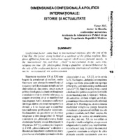 Confesional factor came back to international relations after the end of the Cold War, this factor being tackled as a catalyser of the global conflicts. Religious affiliation forms the civilisations support which moves forward, mainly, in the international life, and their „clash" is not excluded. At the same time, religions are true life phylosophies, being a guideline of moral behaviour. So, the role of the confesional factor in contemporary international relations should not be overestimated, nor underestimated.