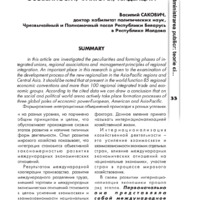 In this article are investigated the peculiarities and forming phases of integrated unions, regional associations and management principles of regional integration. An important place in this research is given to the examination of the development process of the new regionalism in the Asia-Pacific regions and Central Asia. It should be noted that at present in the world function 85 regional economic conventions and more than 100 regional integrated trade and economic groups. According to the cited data we can draw a conclusion that on the social and political world arena actively take place formation processes of three global poles of economic power-European, American and Asia-Pacific.