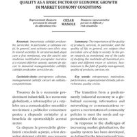 Calitatea ca factor de baza a creşterii economice în condiţiile economiei de piaţă
