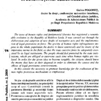 POGONEŢ, Galina. Garantarea drepturilor şi libertăţilor fundamentale ale omului stipulate în Constituţia Republicii Moldova . In: Administrarea Publică, 2009, nr. 2(62), pp. 72-77. ISSN 1813-8489.