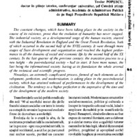 The constant changes, which have been taking place in the society in the course of its existence, prove that the evolution of humanity has never stopped. The industrial society, as a developmental stage of the human society, started with the Industrial Revolution in England and the Great French Revolution, both of which occurred in the second half of the XVIII century. It went through more stages of State development and organization and reached the highest perfor mance in all the domains of social and economic life by the second half of the XX century. In the last quarter of the previous century, the transition process to a new height - the post-industrial society - had its start. It bore more names, the last being the informational society, having at its foundation the whole arsenal of the technical and scientific progress. Nowadays, an extremely complicated process, formed of such elements as de velopment, perfection, and modernization, is taking place in the post-industrial society, which has attained unheard of performances in the development of the civilization. The tendency to a higher perfection is the imperative of the time and of the development of the modern society.