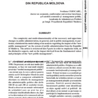 The complexity and multi-dimensionality of the necessary and opportune changes in public administration, in general, and in public management, in particular, stimulated the undertaking of an analysis regarding the impact of the “new public management” on the system of public administration from the Republic of Moldova. The article is structured into 5 parts in order to emphasize both, on the distinctive aspects, and on the impact derived from the fundamental values and principles of the “new public management”.