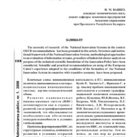 The necessity of research of the National Innovation Systems in the context OECD recommendations has been grounded in this article. Structure and institutional framework of the National Innovation System, methodological approaches to an evaluation of information streams, procedure of industrial cluster analysis on purpose of the technical-scientific foundation of the Innovation Policy have been considered. Scientific and practical recommendations on using of the European Union’s experience adapted to the conditions of the formation of the National Innovation System in countries with transitive economy have been proposed.
