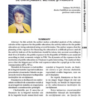In this article the author makes a detalied analysis of the estimate calcules of the expences for the public education; the activity indexes for the public education are being calculated using several formulas. The author argues, that the plauning of the expences for financing the education is a difficult process and all the activity indexes of the institutions should be taken, into account according to their lives of studies; the public expences in the Republic of Moldova are analysed according to their economic weight in PIB. The dynamics of the expences in the institution of public education in Chişinau is quite interesting. The analysed date prove that the biggest part of the real expences taken for a pupil go to the work remuneration (60%-70%).