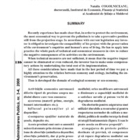 Recently experience has made clear that, in order to protect the environment, the most economical way to prevent the pollution is to take a preventive position still from the projection stage. In accordance with current legislation any investor is obliged to investigate the compatibility of his project with the preservation of the environment’s enquiries and human’s area of living. He has to apply into practice the whole pack of technical and economical measures in view to reduce the negative consequences of its activities on the environment. When technical measures are not sufficient, it mean that the negative impact cannot be eliminated or even reduced, the investor has to make some compensatory actions by undertaking the total cost of its implementation. All these considerations have made that in the last period of time we pay a highly attention to the relation between economy and ecology, including the environment’s preservation. Thus is developed the domain of ecological economy or eco-economy.