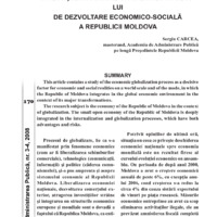 This article contains a study of the economic globalization process as a decisive factor for economic and social realities on a world scale and of the mode, in which the Republic of Moldova integrates in the global economic environment in the context of its major transformations. The research subject is the economy of the Republic of Moldova in the context of globalization. The small open economy of the Republic of Moldova is deeply integrated in the internalization and globalization processes, which have both advantages and risks.