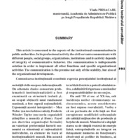 This article is concerned to the aspects of the institutional communication in public authorities. In its professional activity the civil servants communicate with different people, social groups, organizations, institutions and its activity depends of integrity of communicative behavior. The communication is indispensable solution in order to implement all other functions and specific organizational activities The communication is the premise not only of the stability, but also of the organizational development.